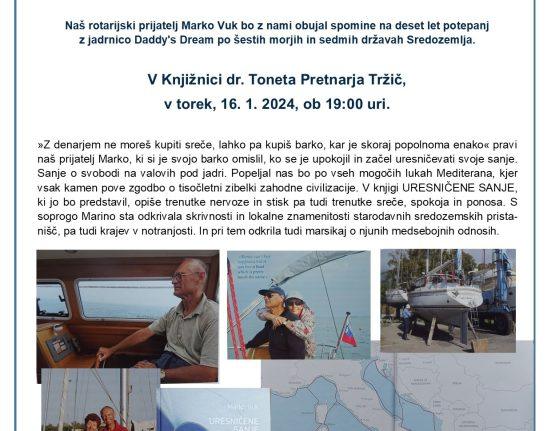 Rotary klub Tržič Naklo vabi na predstavitev knjige in potopisno predavanje Marka Vuka URESNIČENE SANJE v torek, 16. 1. 2024 ob 19. uri.
