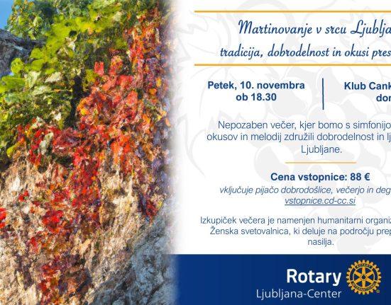 Rotary Club Ljubljana – Center s ponosom in predanostjo nadaljuje dolgoletno tradicijo dobrodelnega martinovanja. Letošnje srečanje bo obarvano z ljubeznijo in spoštovanjem do.