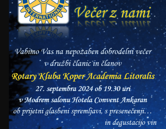 Spoštovani rotarijski prijatelji, Rotary Klub Koper Academia Litoralis vas z veseljem vabi na njihov osrednji letni dogodek Večer z nami, ki bo potekal.