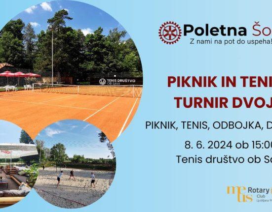 Vabljeni, da se nam pridružite na dobrodelnem teniškem turnirju dvojic s piknikom, v organizaciji Rotaract kluba Ljubljana 25 in Rotary kluba Ljubljana Meus,.