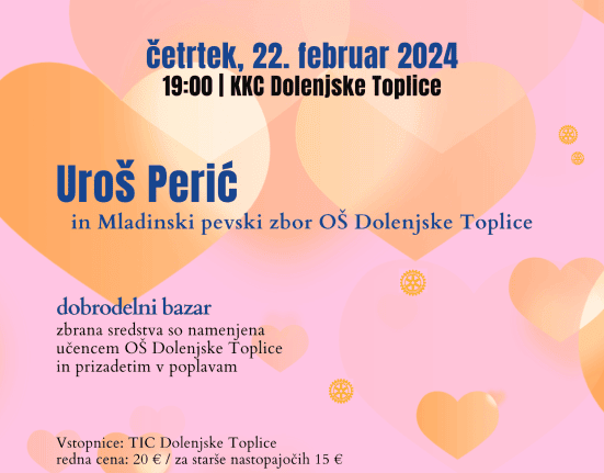Toplo vabljeni na tradicionalni Valentinov koncert, ki bo v četrtek, 22. februarja 2024, ob 19:00 uri v KKC Dolenjske Toplice Urošu Periću, katerega.