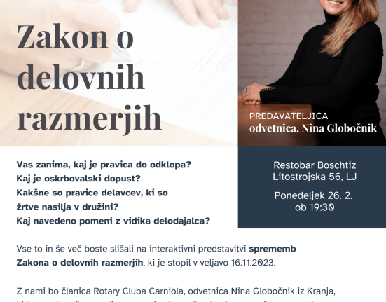 Vabimo vas na dobrodelno gledališko predstavo Rotary kluba Celje-Barbara Celjska v izvedbi KUD Zarja Trnovlje, dne 13. 2. 2024 ob 19.00. Dobrodelni prispevek.