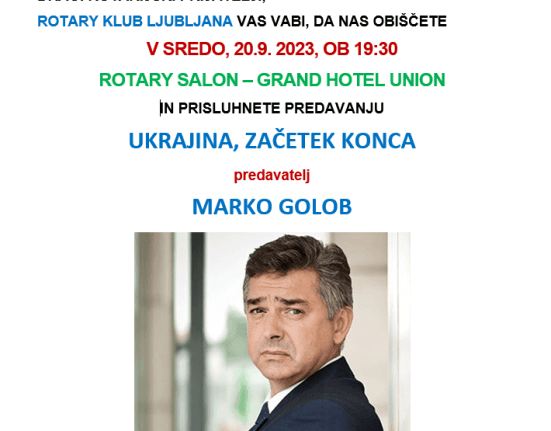 Dragi rotarijski prijatelji. Rotary klub Ljubljana vas vabi, da jih obiščete v sredo, 20. 9. 2023 ob 19:30, kraj Rotary salon – Grand.