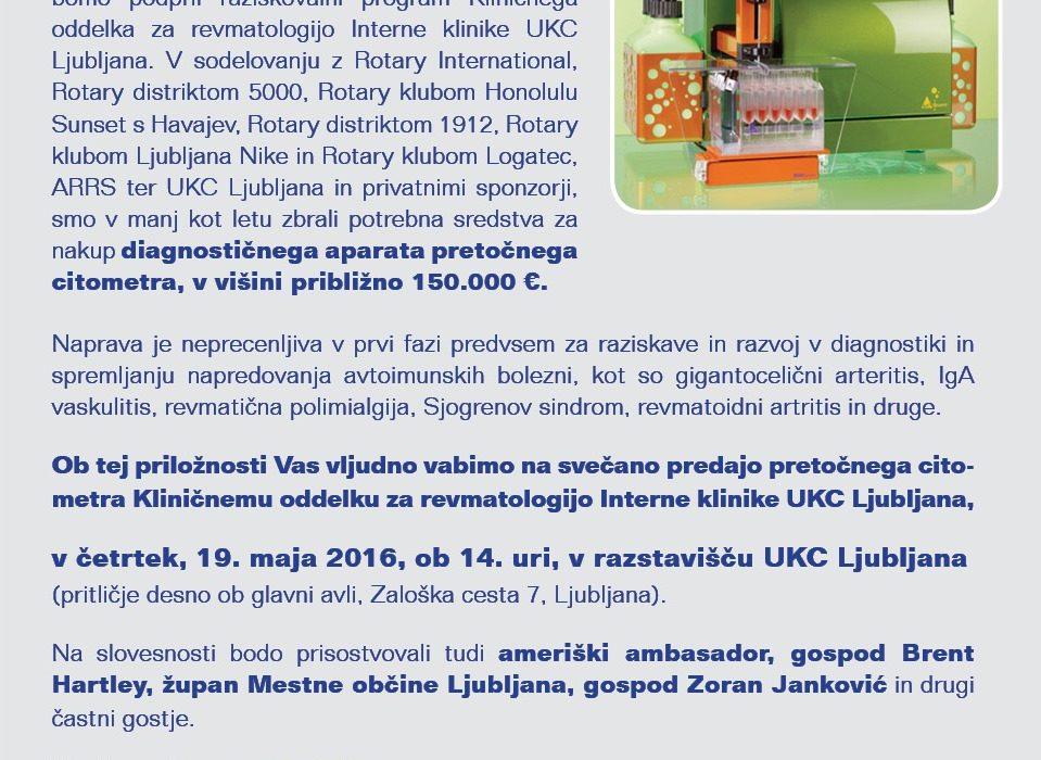 Pretočni citometer za Revmatologijo By rotary 20 februarja, 2023 Less than a minute 3 leta nazaj Facebook Twitter LinkedIn Whatsapp Print Share via Email Svečana predaja pretočnega citometra Kliničnemu oddelku za revmatologijo