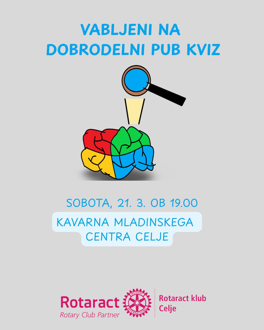 Člani Rotaract kluba Celje vabimo, da se nam pridružite v soboto, 21. marca ob 19.00 na pub kvizu v MCC kavarni v Celju