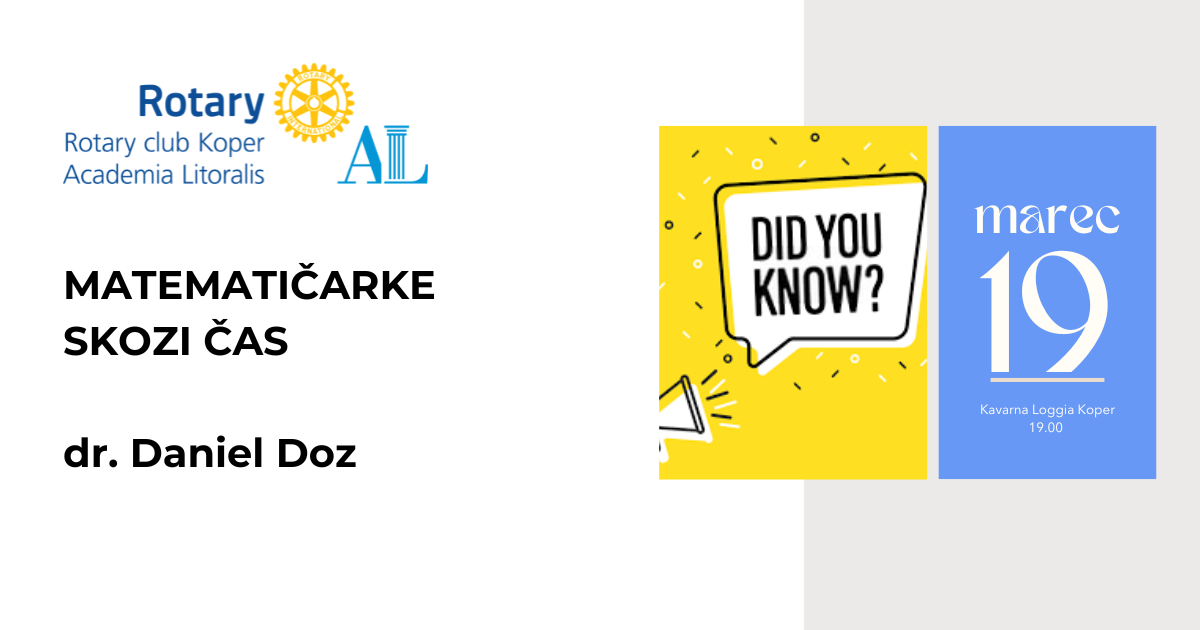 V znamenju mednarodnega dneva žena bo dr. Daniel Doz predstavil zanimive zgodbe in manj znane podatke o matematičarkah skozi čas – ženskah, ki so s svojim znanjem pomembno prispevale k razvoju matematike, čeprav njihovi dosežki pogosto niso bili dovolj prepoznani.