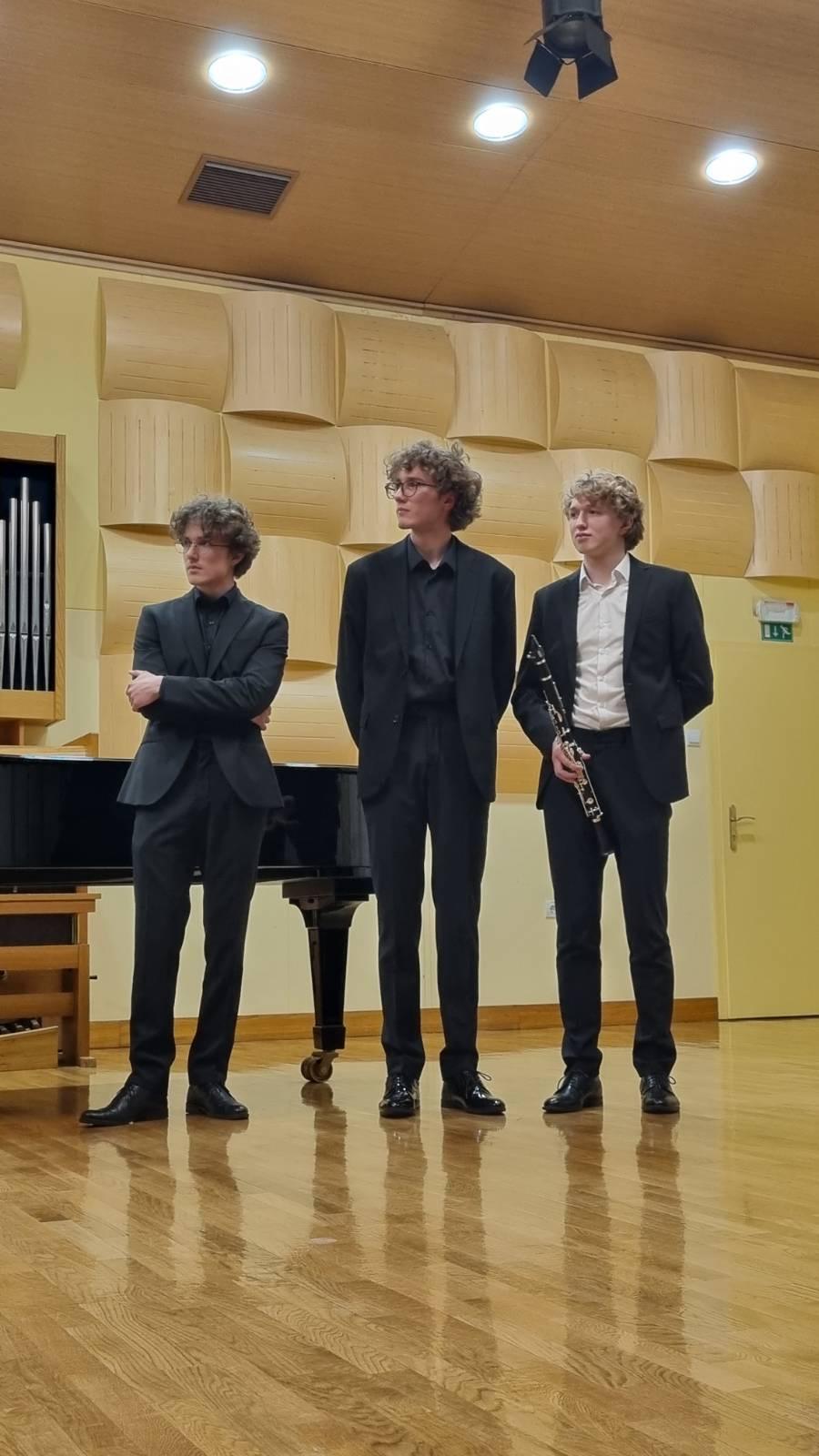 Lenart (klavir, študent 2. letnika klavirja na AG pod mentorstvom Sae Lee), Luka (dijak 3. letnika I. gimnazije v Celju, klarinet) in Lovro (študent medicine in jazz trobente na AG) bodo z deli Granadosa, Kovacsa, Debussyja, Kreislerja in Saint-Saënsa pričarali glasbeni pozdrav pomladi in se veselijo, da vam bodo lahko zaigrali. Vaša prisotnost bo za mlade talente najlepša nagrada!
