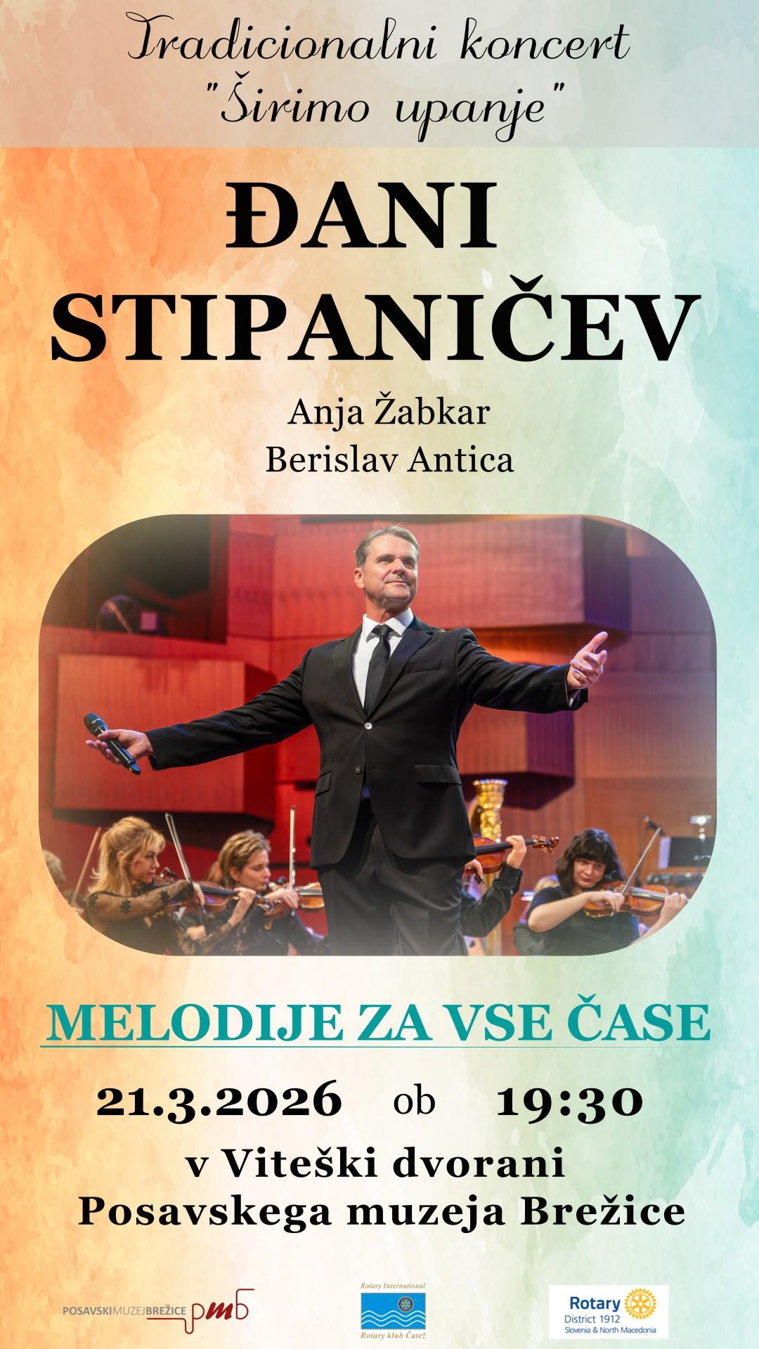 Člani Rotary kluba Čatež ob Savi, vas, 21. marca 2026 ob 19.30, vabimo v prekrasen ambient Viteške dvorane gradu Brežice, na tradicionalni koncert “Širimo upanje”. Glasbeno nas bodo razvajali eden najbolj prepoznavnih in priljubljenih hrvaških tenoristov Đani Stipaničev z gostjo Anjo Žabkar in Berislavom Antico na klavirju.