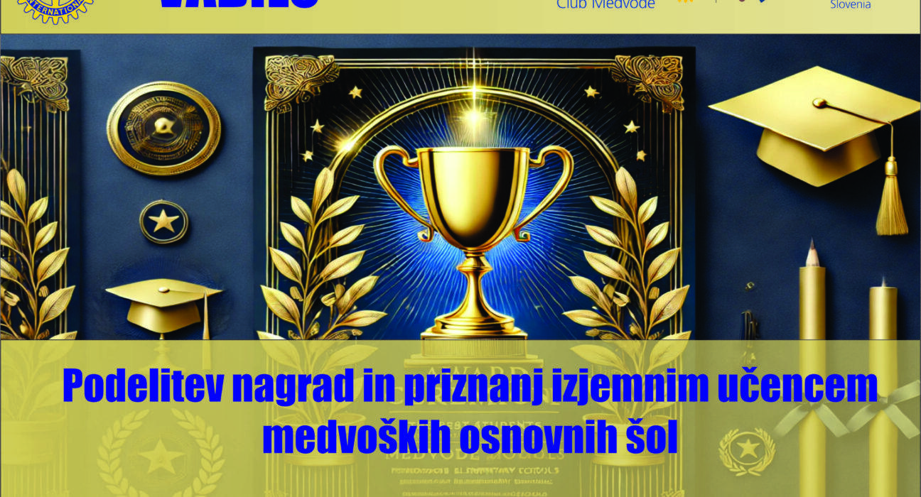 - Podelitev priznanj in nagrad izjemnim učencem medvoških osnovnih šol s kratkimi utemeljitvami, s strani Rotary kluba Medvode