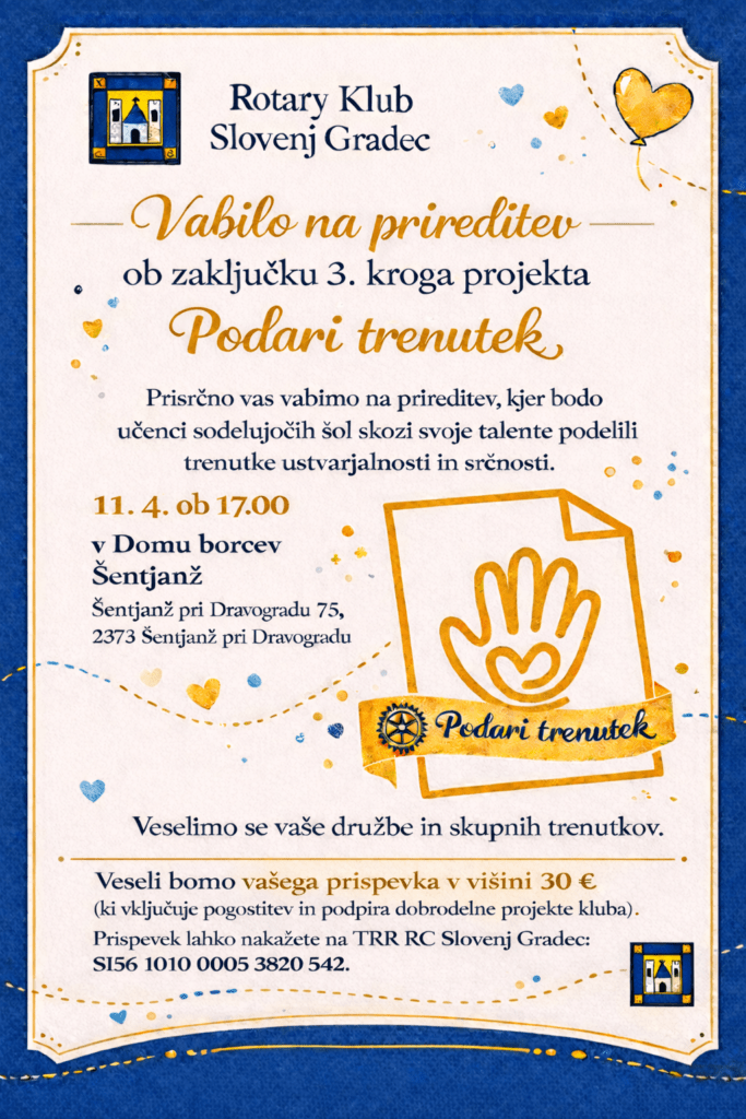 V soboto, 11. 4. 2026, bo ob 17.00 oder dvorane Doma borcev v Šentjanžu pri Dravogradu pripadal otrokom mnogih koroških šol, ki sodelujejo pri projektu Podari trenutek. Dobili bodo priložnost, da se pokažejo in zasijejo. Zelo veseli bomo, če se nam boste pridružili, da jih skupaj podpremo in jim pokažemo, kako zelo so pomembni.