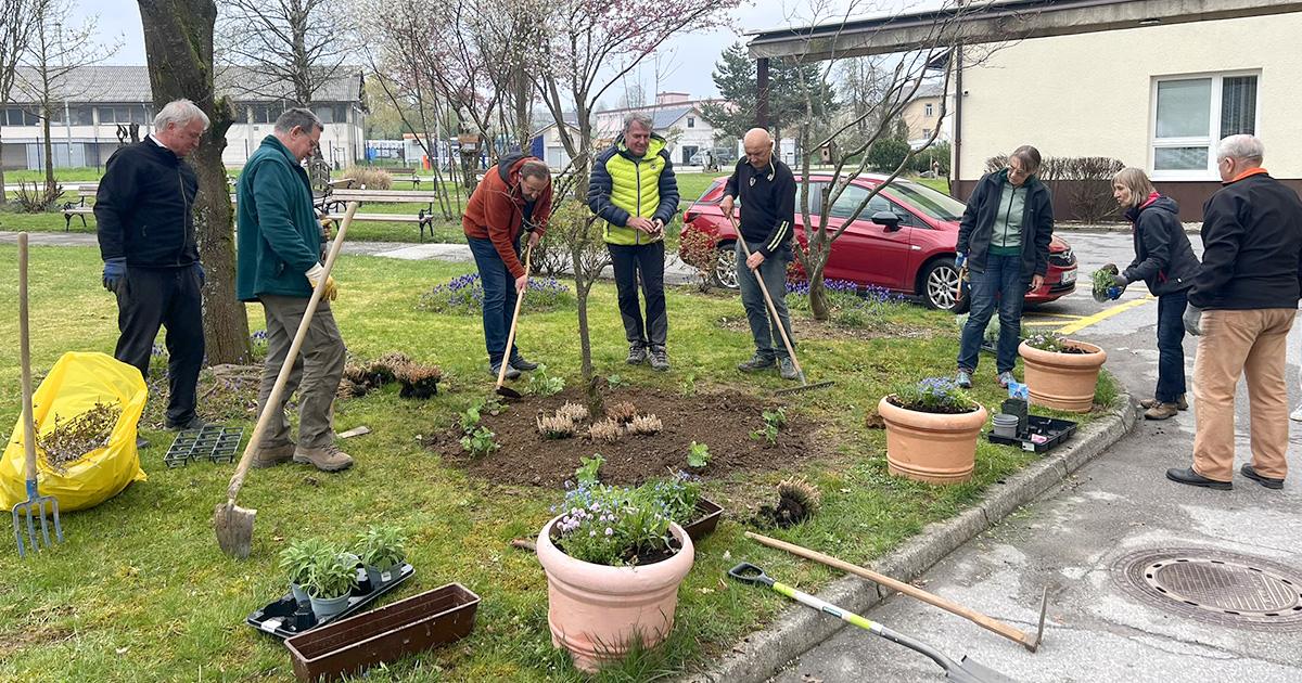 Letošnja akcija je bila usmerjena v zasaditev medovitih rastlin ob domovih za starejše, z namenom izboljšanja kakovosti bivanja stanovalcev ter hkratnega prispevka k večji biotski raznovrstnosti in podpori opraševalcem. Sajenje medovitih rastlin je potekalo v sredo, 15. aprila 2026, ob 16. uri pred Domom starejših občanov Kočevje. Dogodek smo začeli s kratkim nagovorom direktorice doma, Lidije Vardijan, in predsednika kluba Mirana Škulja. Pred začetkom sajenja nas je nagovorila tudi kolegica Ana Ogorelc, ki je predstavila pomen medovitih rastlin, izbrane vrste ter potek in razporeditev zasaditve. V okviru akcije smo člani kluba zasadili tri drevesa japonske češnje »Kazan« ter različne trajnice: deset materinih dušic, šest žajbljev, šest smiljev, deset sivk, štiri jesenske astre, dva helenija, en ameriški slamnik, šest rudbekij, štiri drobnjake, štiri spominčice in štiri plahtice. Vse sadike ter zemljo za sajenje je prijazno zagotovilo podjetje Vrtnarstvo Gorazd Šoštarko, s. p., za kar se jim iskreno zahvaljujemo.